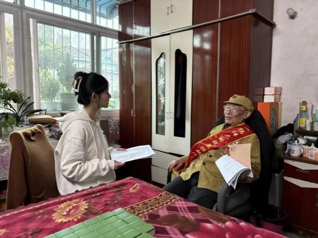 采访组的志愿者们也带着慰问品马不停蹄地赶往抗美援朝老战士的家,既为抗美援朝老将送去了温暖,也在采访时对那段峥嵘岁月有了更加深刻的理解。采访中,当问到那段艰苦抗战史的细节时,老战士侃侃而谈,泪光微泛的双眼代表的不仅是对逝去的战友的思念,更是对今时不同往昔的无限感慨。老战士表示:“当今美好的生活靠的不仅是亿万同胞的鲜血,科技实力与综合国力的提升也功不可没。”此次采访意义深重,相信此后爱国精神必将化作生活共识与行动自觉,厚植于每个武科大人心中。