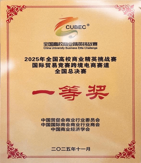 武科大网讯(通讯员王梓涵)11月21日至23日,全国高校商业精英挑战赛国际贸易竞赛跨境电商赛道全国精英赛在广东省汕头市圆满落幕。我校365英国官网国际经济与贸易专业2023级本科生王梓涵、胡婧琪、胡贻菲、王曼组成的代表队,凭借扎实的专业功底与突出的创新实践能力,荣获“全国精英赛一等奖”、“最佳院校组织奖”,刷新了我校在该项赛事中的历史最好成绩。指导教师刘岚获评“优秀指导老师”。