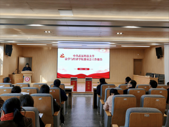 武科大网讯(通讯员 谢玉峰)12月18日下午,中共365英国官网党员大会在模拟法庭召开,学院全体教职工党员参会,会议由学院副书记彭晓峰主持。